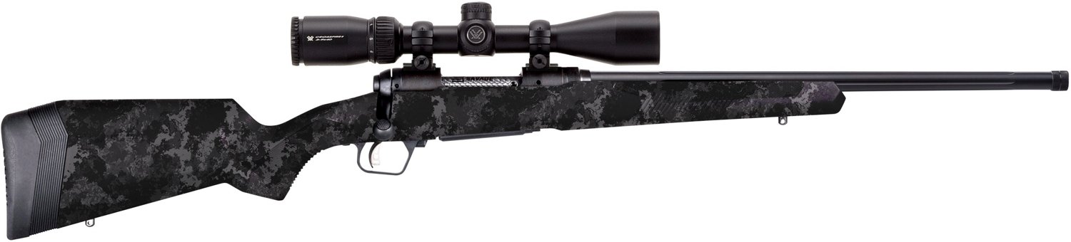 The Savage 110 Apex Hunter XP .308 WIN Rifle is a bolt action rifle with a 4-round capacity and a threaded barrel. It also has a synthetic stock and a 3-position tang mounted safety.
