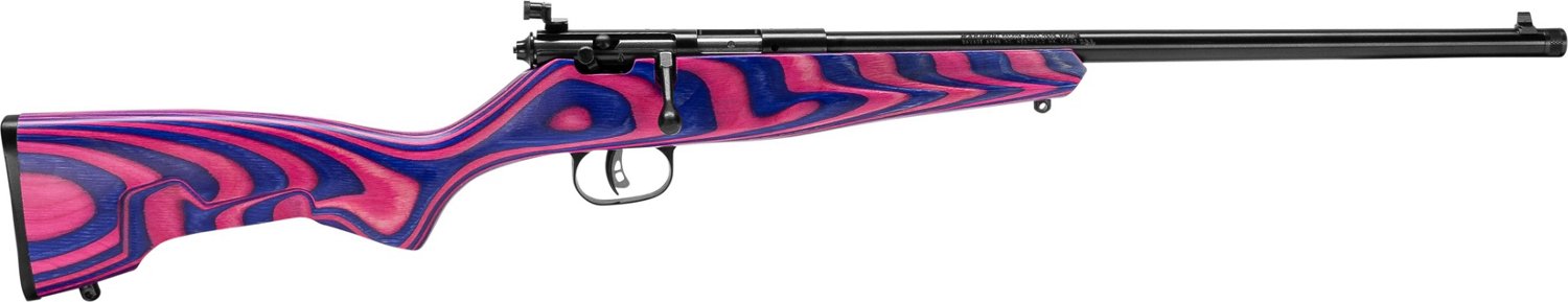 Stand out at the firing range with the Savage 13797 Rascal Minimalist .22LR Bolt Action Rimfire Rifle. The carbon steel matte black barrel has an 11 degree target crown, while the stock sports a pink/purple minimalist laminate design using ChevCore™ Laminate technology. The AccuTrigger™ allows for user adjustment.