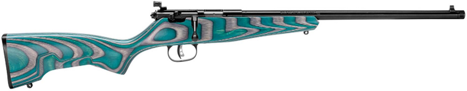 Stand out at the firing range with the Savage 13802 Rascal Minimalist .22LR Bolt Action Rimfire Rifle. The carbon steel matte black barrel has an 11 degree target crown, while the stock sports a teal/gray minimalist laminate design using ChevCore™ Laminate technology. The AccuTrigger™ allows for user adjustment.