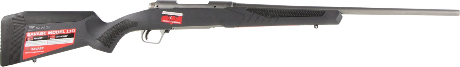 Stay prepared in the field with the Savage Arms 10/110 Storm LH 6.5 Creedmoor 22 in Centerfire Rifle. This 6.5 Creedmoor caliber rifle boasts a bolt action with a 4-round capacity. The 22-inch stainless steel barrel features a matte finish and the AccuFit™ system allows the user to adjust comb height and length-of-pull. The synthetic stock has a soft grip overmold fore-end and pistol grip, while the design is complemented with a user adjustable AccuTrigger™ and an AccuStock™.