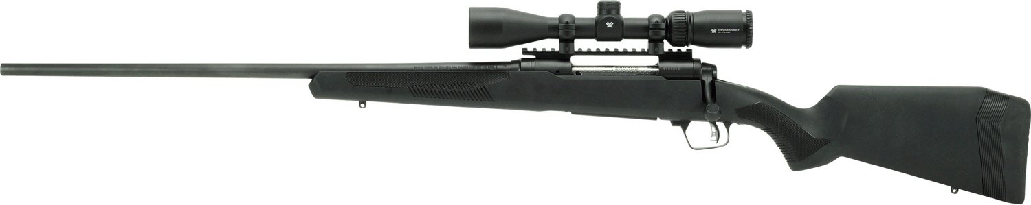 Stay prepared out in the field with the Savage Arms 110 Apex Hunter XP LH 350 Legend 18 in Centerfire Rifle. This bolt action firearm with a 4-round capacity boasts a synthetic sporter stock and a carbon steel receiver. The design features a precision button-rifled barrel and is complemented with a mounted and bore-sighted 3-9x40mm Vortex Crossfire II scope and a user-adjustable AccuTrigger™.