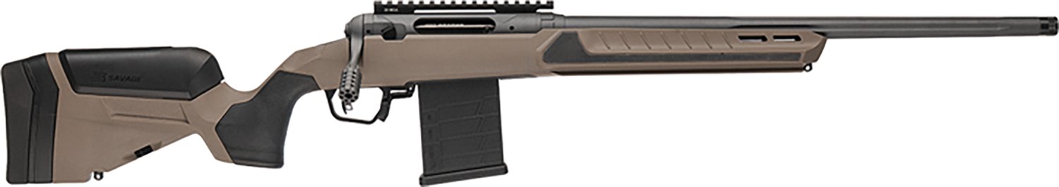 Arm yourself with the Savage Arms 110 Core Tactical .308 Win Bolt Action Rifle. It is bolt action with a 10-round capacity. The threaded carbon steel barrel with a platinum Cerakote finish is 24-inches long, and its fixed synthetic stock is equipped with a Coyote Tan finish. The beavertail with an Integral ARCA rail finishes off the design.