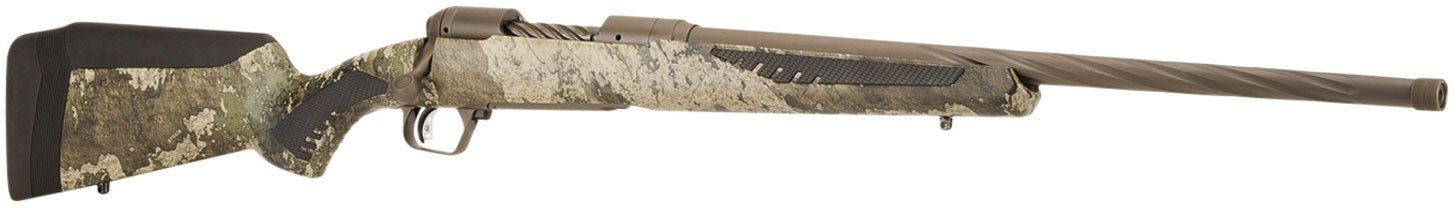 Stay in control out in the field with the Savage Arms 110 High Country 7mm REM MAG 22 in Rifle. This bolt action firearm boasts a 3-round capacity and an AccuFit™ system. The stainless steel spiral fluted barrel features a coyote Cerakote finish and is complemented with a 3-position safety, a user-adjustable AccuTrigger™ and a TrueTimber® Strata synthetic stock.