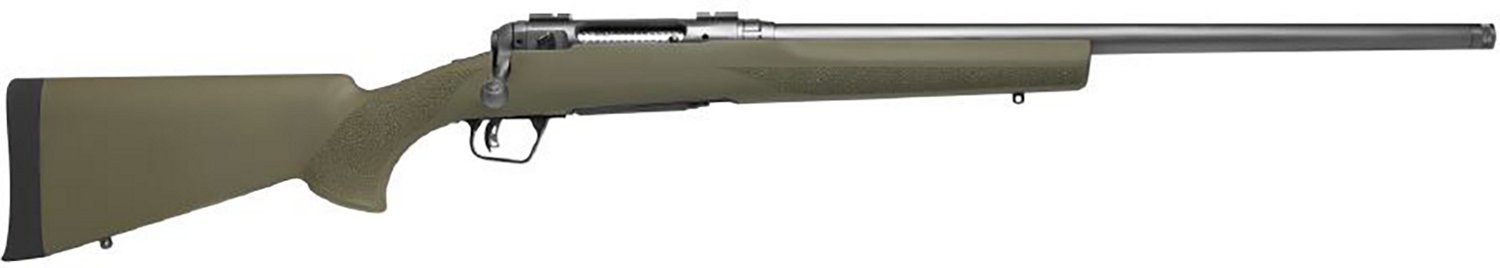 Practice your shooting skills with the Savage Arms 110 Trail Hunter 300 Win Mag 3RD THD Bolt Rifle. This weapon features a bolt action with a 4+1 firing capacity, and an 18-inch sporter barrel. This rifle also includes a synthetic stock, and an ACCU-trigger.
