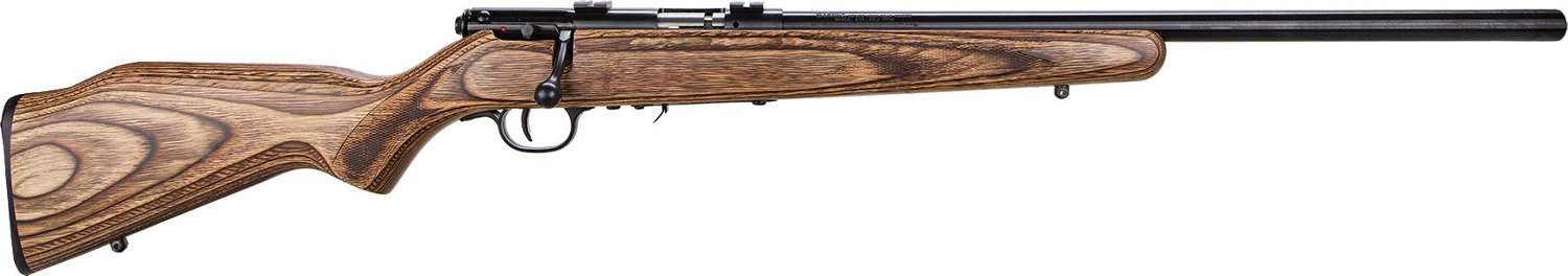 With allover wood-grain detailing, the Savage Arms 93R17 BV .17 HMR Bolt-Action Rifle finds a balance between traditional style and modern technology. The firearm features a laminate wood stock, as well as a carbon-steel varmint barrel and a Monte Carlo-style comb. The AccuTrigger is user adjustable. Manual safety.