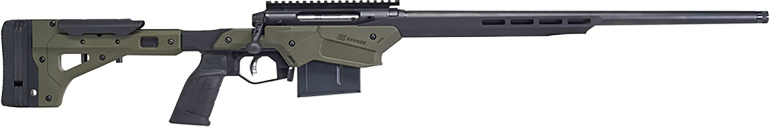 Arm yourself with the Savage Arms Axis II Precision .30-06 Springfield Bolt Action Rifle. It is bolt action with a 5-round capacity. The 22-inch barrel is heavy, and its MDT Chassis stock is constructed from aluminum. Polymer grip.