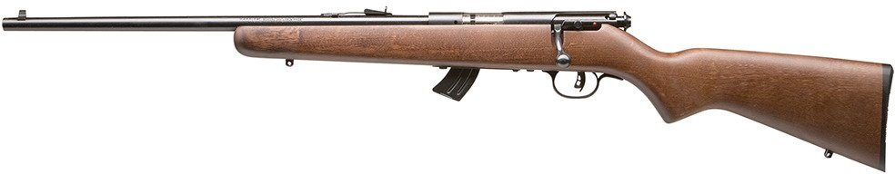 Designed for left-handed, young shooters, this Savage Arms Youth Mark II GLY .22 LR Bolt-Action Rifle Left-handed features a free-floating, button-rifled barrel. The stock is crafted from walnut and features a steel receiver. Accutrigger.