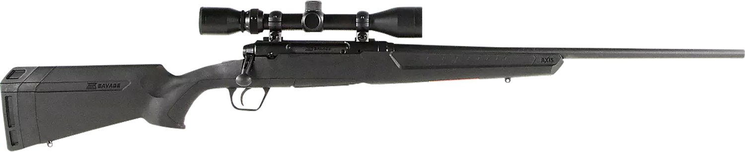 The Savage Axis XP .243 Win Bolt-Action Rifle features a hand-straightened, button-rifled barrel made of carbon steel and an ergonomic polymer stock. The centerfire hunting rifle is designed with a thumb safety and includes a 3 - 9 x 40mm scope.