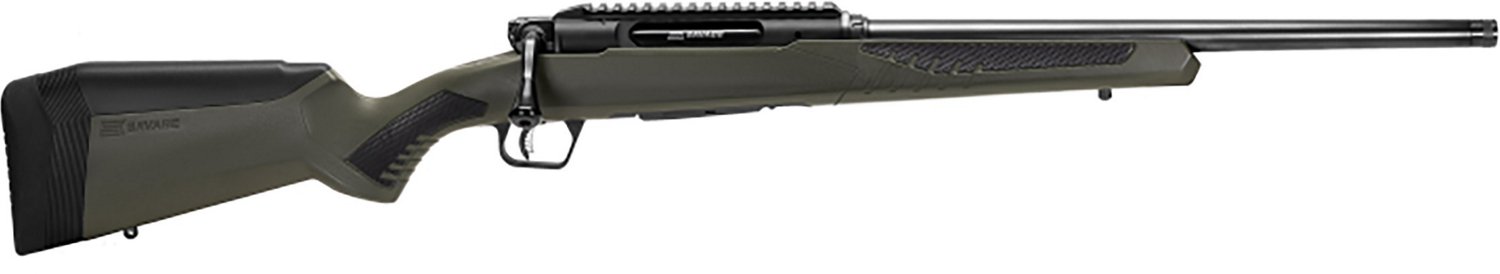 Ensure fast target acquisition with the Savage Impulse Hog Hunter 30-06 Springfield Bolt Action Rifle. The rifle is built with a matte black aluminum receiver and carbon steel barrel with contoured threading, while the OD green AccuStock® features AccuFit® adjustable length-of-pull and comb height. The AICS Magazine has ambidextrous release, and the 1-piece 20 MOA rail is machined into the receiver.