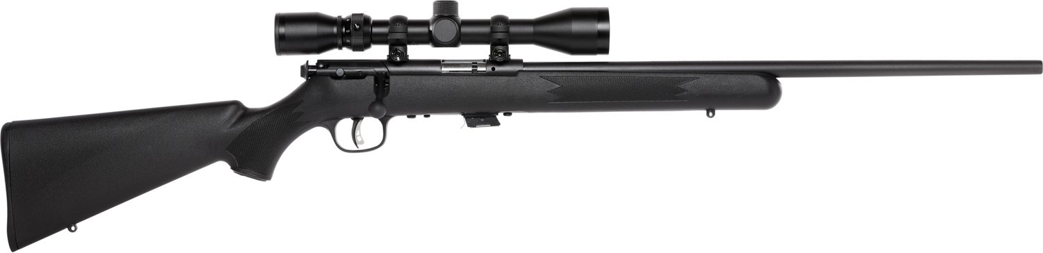 Achieve comfort and style on your next hunting trip with the Savage Mark II XP .22 Bolt-Action Rifle. This rifle includes a thumb safety, and it comes with a mounted and boresighted 3-9x40 scope. The rifle also features a button-rifled, 21-inch barrel.