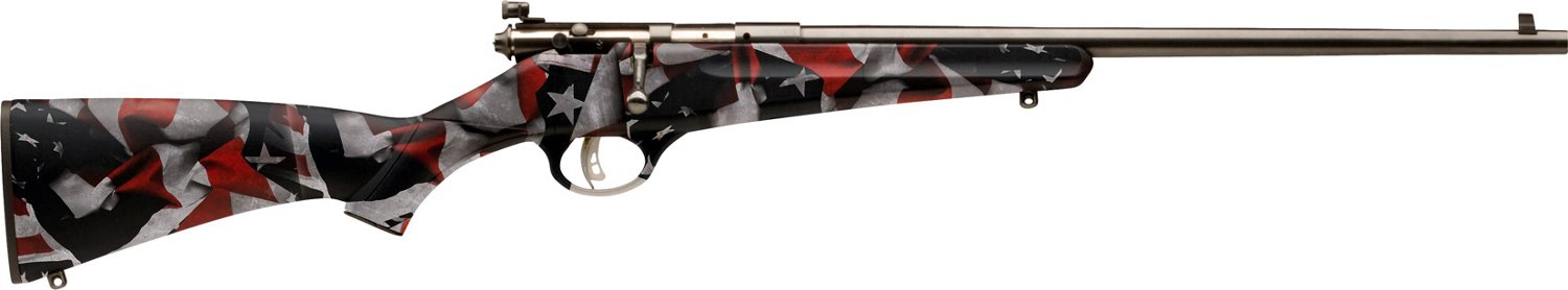 Learn how to use a rifle with the Savage Youth 13810 Rascal .22LR Bolt Action Rimfire Rifle. The rifle features a carbon steel sporter barrel with a blued finish and a synthetic stock with an American flag pattern, while the peep sights and AccuTrigger™ are user adjustable for convenience. The rifle cocks by lifting the bolt and unloads without pulling the trigger for ease-of-use.