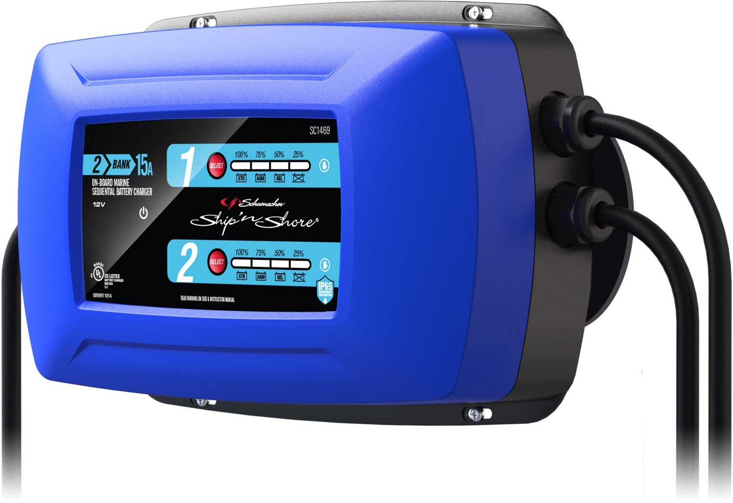 Make sure your electronic accessories stay charged with the Schumacher Electric 2-Bank 12V Onboard Marine Sequential Battery Charger. This marine charger can charge 1 or 2 batteries sequentially with multi-stage charging that meets the highest standards for energy efficiency. The LED indicators indicate battery type, charging status, reversed connections and aborted charge for your convenience.