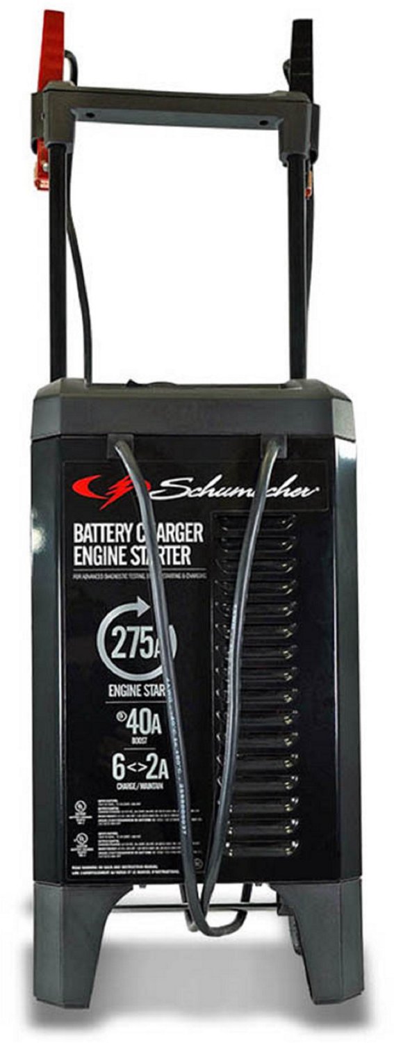 Start your engines and charge your batteries on the go with the Schumacher Electric SC1326 275A 6/12V Battery Charger. The 270-amp engine start powers SUVs, trucks and large engines, and the 40-amp boost mode brings discharged batteries back to life. The float mode monitoring maintains optimal battery charge, and the multistage charging offers increased precision, safety and battery life. DOE compliant and UL ULC safety certified.