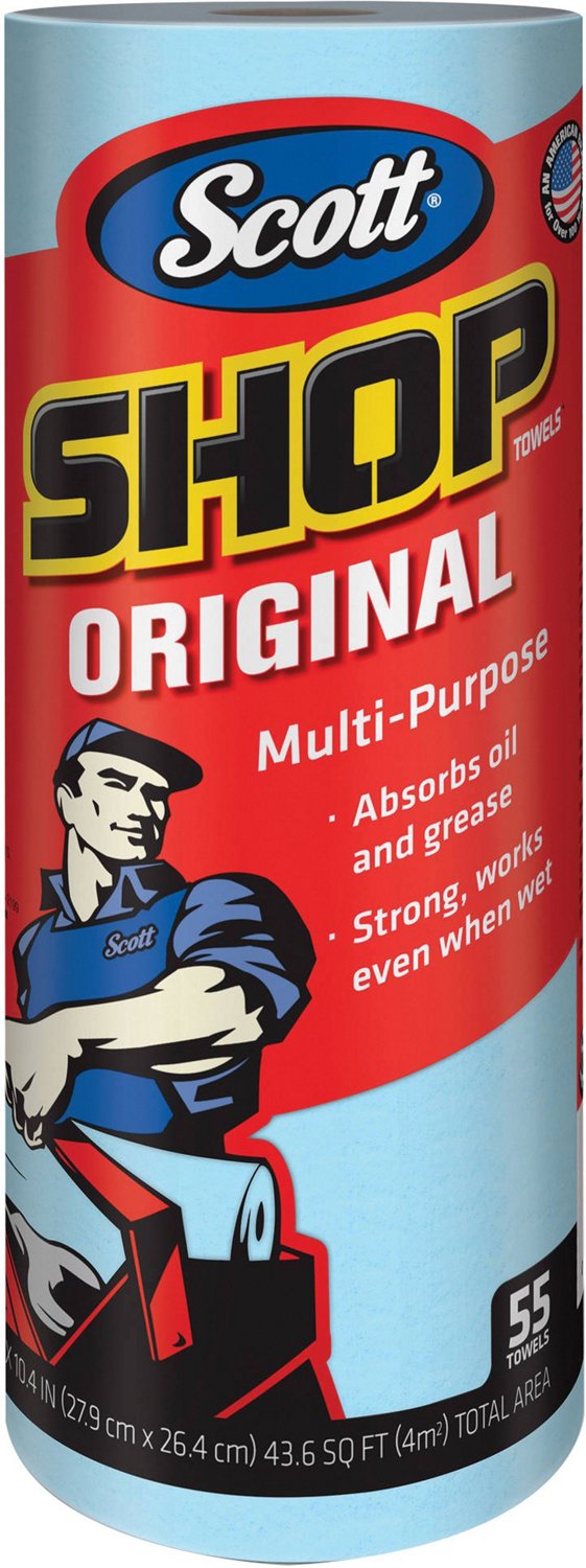 Reach for this Scott Blue Shop Towel Roll 55 Count for all your automotive and workshop tasks. They are strong, soft and absorbent for wiping tools and hands, and each sheet is 11 inches x 10.4 inches to cover an ample amount of surface area.
