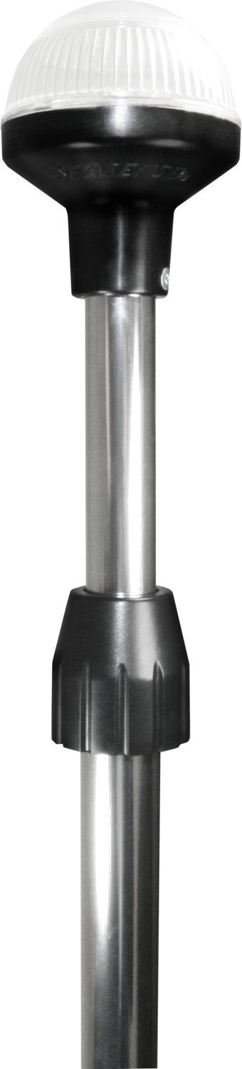 Make sure your boat is seen with the SeaSense LED Telescopic Stern Light. The 360 degree light can be seen for up to 2 nautical miles, while the 2 pin base allows for easy installation. The aluminum construction affords durability, and the 0.35 amp draw ensures an extended battery life.
