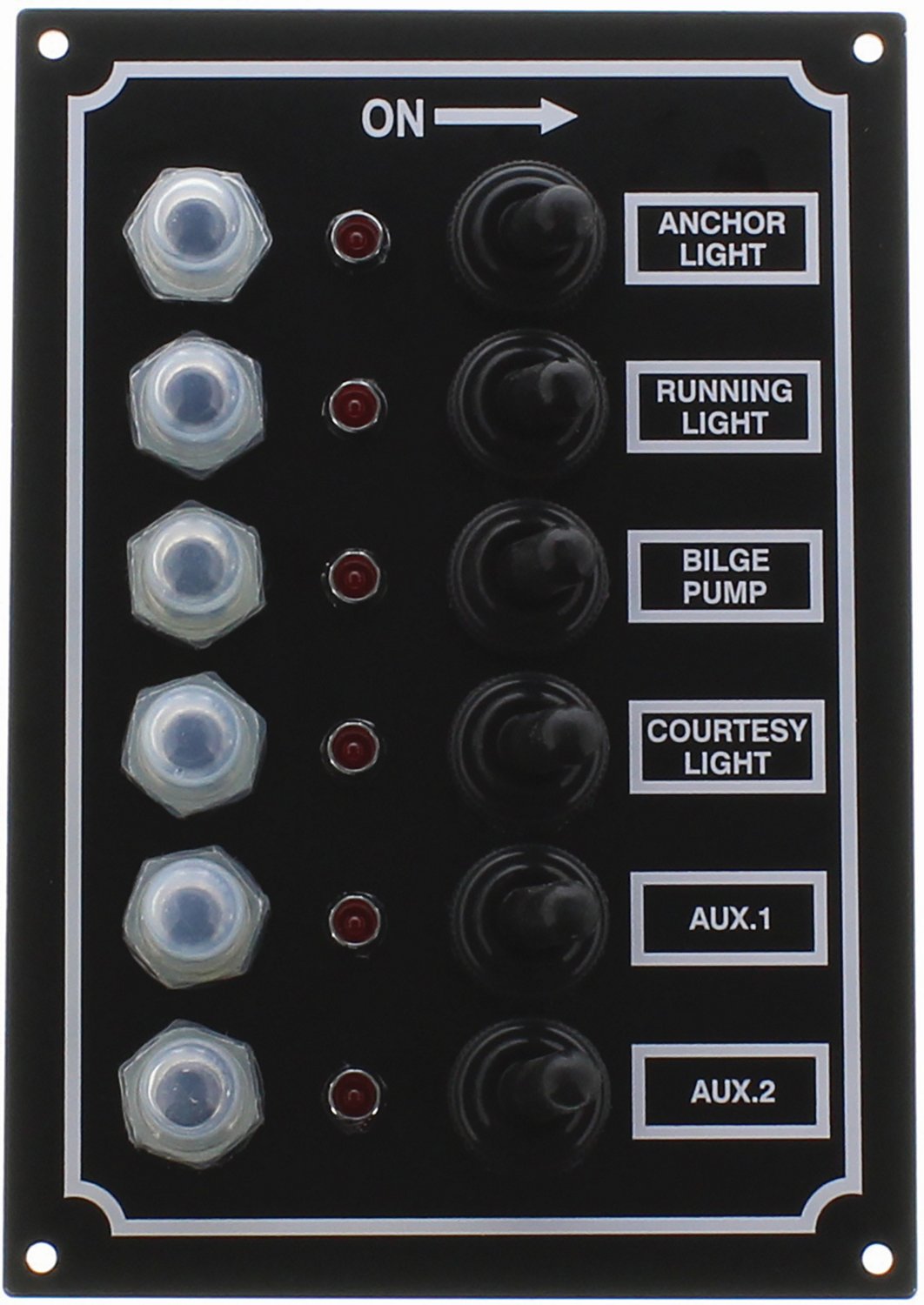 See what controls you're pressing at night using the SeaSense LED Toggle 12-Volt 6 Gang Switch Panel. The corrosion-free aluminum panel with marine-grade tinned wire provides lasting durability, and the LED indicator lights deliver clear visibility at night.