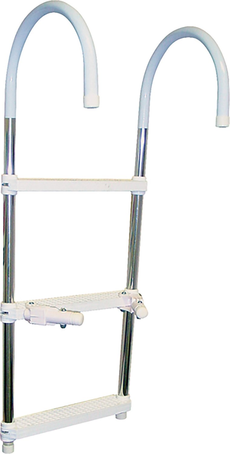 The SeaSense Portable 3 Step Boat Ladder quickly and easily hooks over the side of your boat. The HDPE injection molded steps provide traction, and the aluminum tubing resists wear and tear.