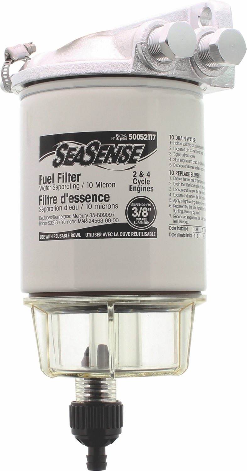 Protect your pump with the SeaSense Universal Fuel Filter Kit. This kit defends against water, dirt and other contaminants, while the aluminum filter head affords durability. The quick drain release valve and plastic bowl allow for convenient visual inspection.