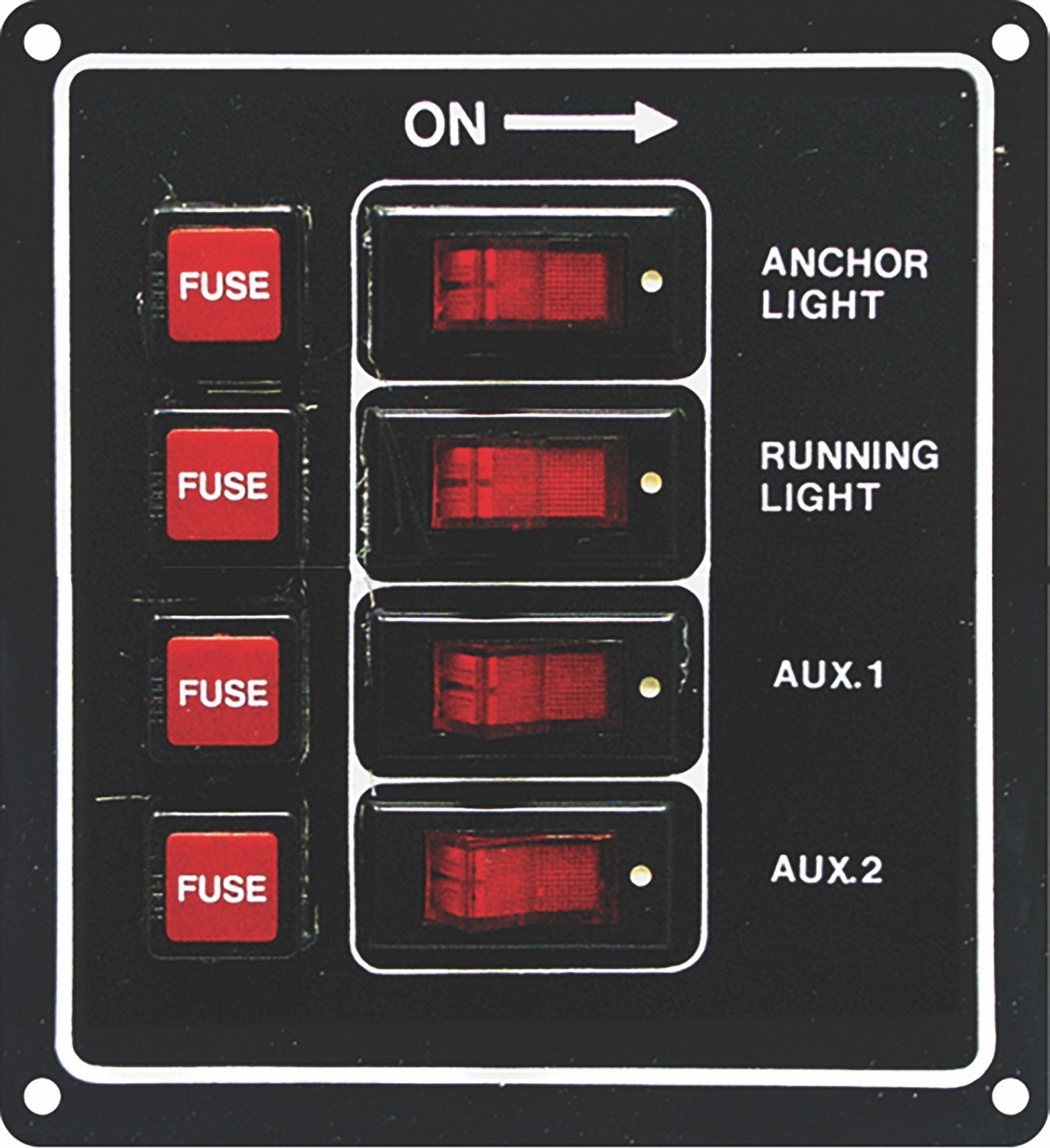Maintain control of the power to your boat at night using the SeaSide Rocker 12-Volt 4 Gang Switch Panel. The corrosion-free aluminum panel with marine-grade tinned wire provides lasting durability, and the illuminated rocker switches off for easy visibility at night.