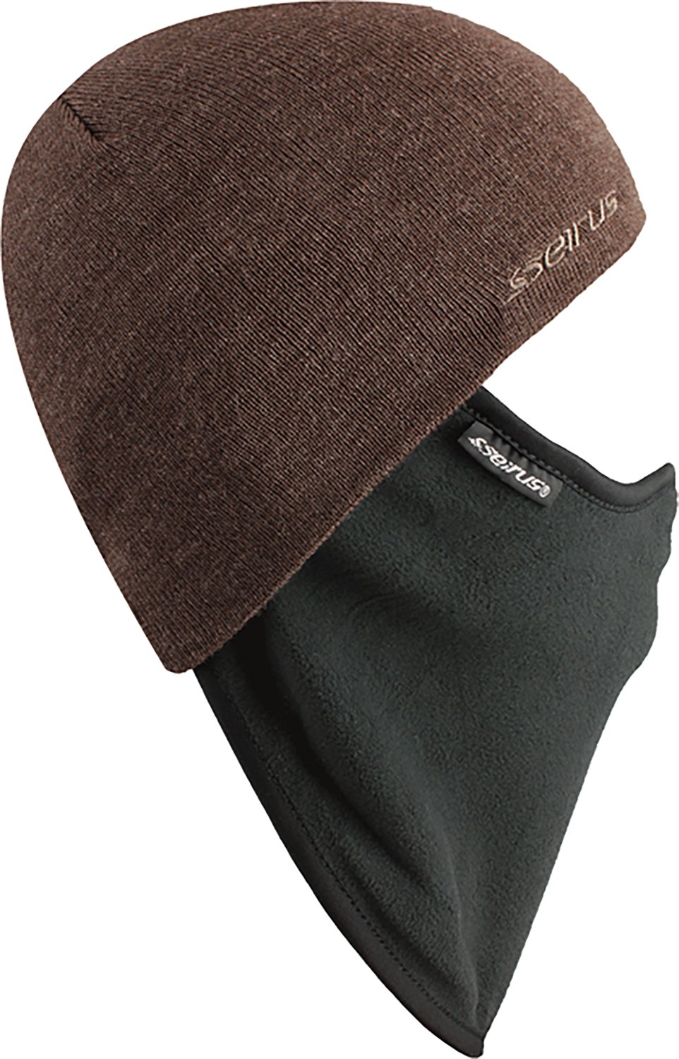 You'll stay warm while wearing the Seirus Men's Fine Solid Quick Draw Face Mask that features a 3-in-1 design. The hat is made of 70% wool and 30% acrylic, and the built-in face mask is made of 100% fleece for optimal warmth. Neck warmer.