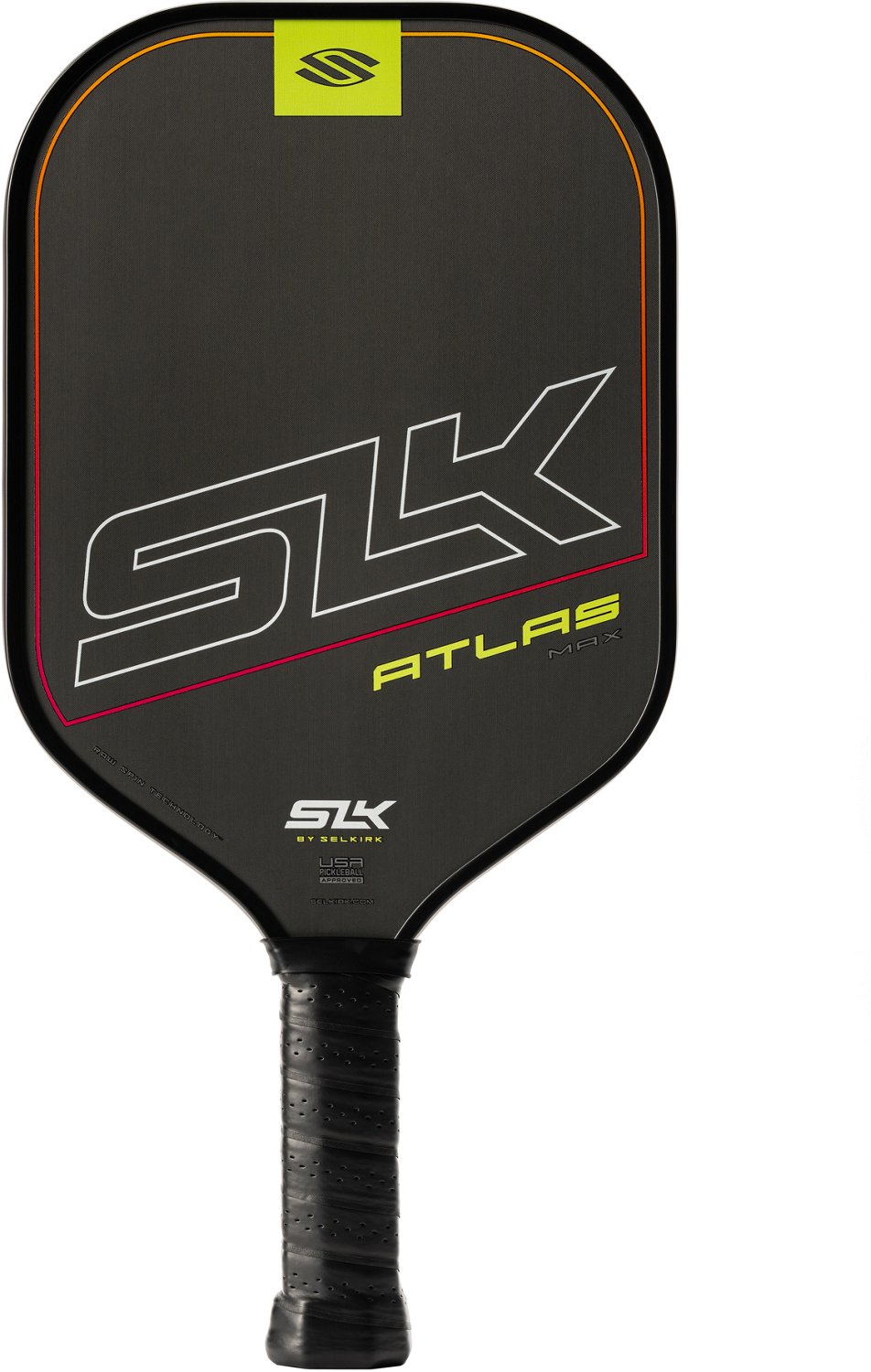 Play your best match with the Selkirk Sport Atlas Max Pickleball Paddle. The premium carbon fiber face offers a surface that provides rigidity for powerful shots and texture, enhancing spin and control. Its 16-millimeter polymer honeycomb core achieves consistency with every shot, and its raw spin technology provides a textured surface that enhances ball control. The EdgeSentry edge guard is low profile, lightweight, and durable to create a well balanced, solid paddle.