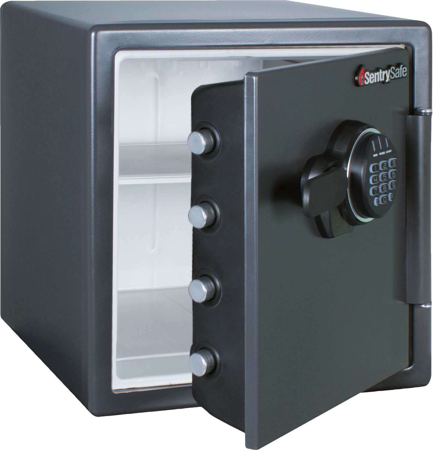 Explore the Sentry Digital Safe, providing reliable security and advanced features. This top-notch safe boasts a digital lock for quick access to your most valuable possessions. With UL Classified fire protection and a pry-resistant hinge bar, rest easy knowing your important documents and other valuables are safeguarded against fire and forced entry. The solid steel construction and ETL Verified water resistance add an extra layer of durability and protection. The digital keypad allows for a customizable combination, putting you in control of your security. The door pocket and tray provide convenient storage for jewelry, money, and important papers.