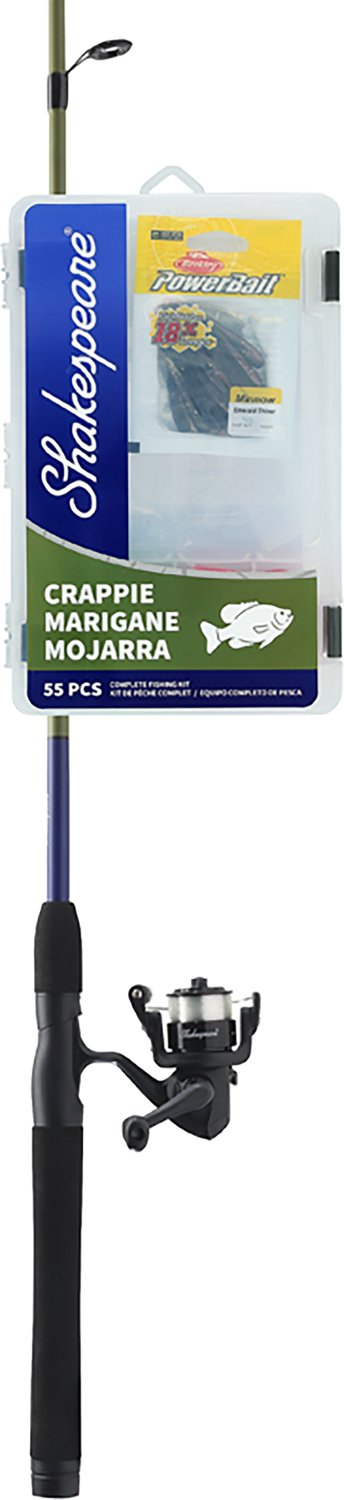 Shakespeare Catch More Fish Crappie Spinning and anglers will have everything they need to enjoy a day on the water catching crappie. In addition to a Shakespeare® rod and reel, the combo includes Berkley® branded bait, assorted tackle, and is pre-spooled with 4 LB Stren monofilament fishing line.
