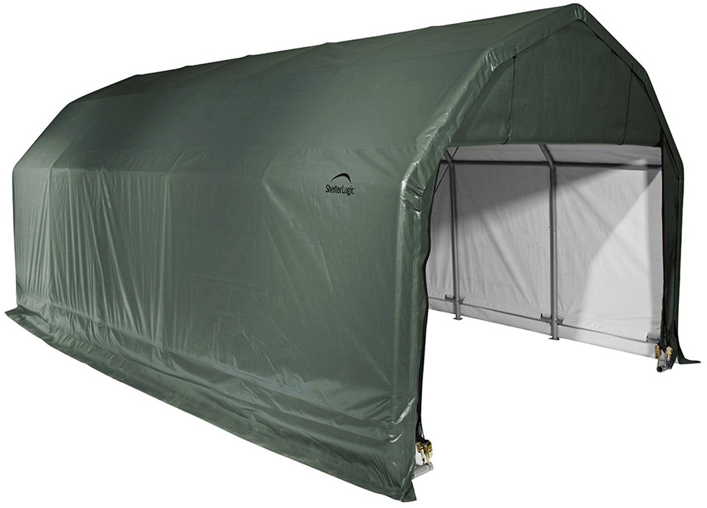 Offering a great storage space for cars, trucks, tractors and lawn and garden equipment, the ShelterLogic 12' x 28' Barn Style Shelter provides a "barn in a box" that is easy to install and features a gambrel frame, high sidewalls and a reinforced roof for stability and strength. The high-quality frame and canopy components are designed to withstand the elements.
