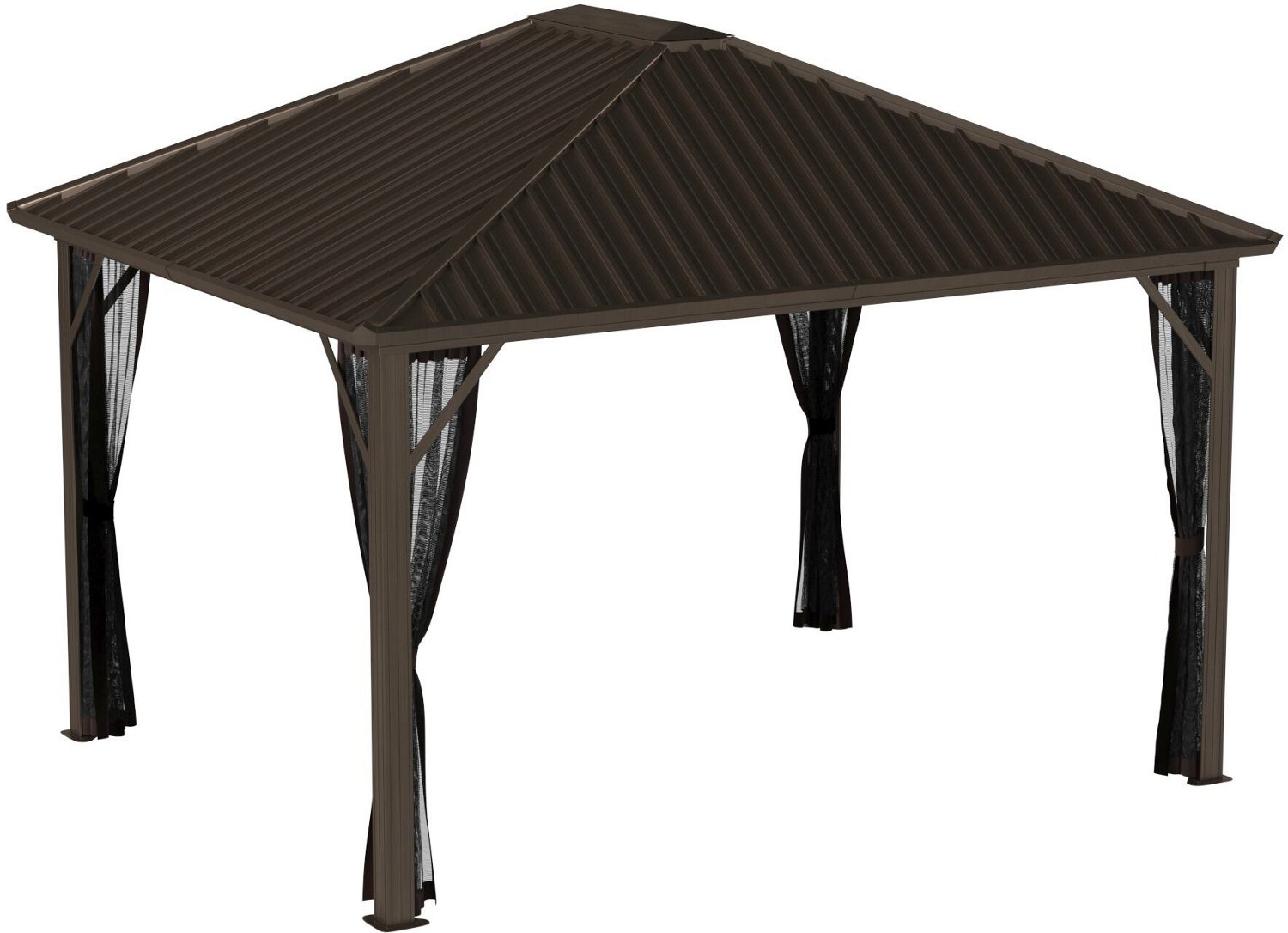 Create a relaxing atmosphere in your backyard when you install the ShelterLogic Dakota Hardtop 10 ft x 12 ft Gazebo. The powder-coat aluminum frame with a 2-track system boasts durability, and the galvanized steel roof offers reliable coverage from the elements. The nylon mosquito netting provides protection from pests.