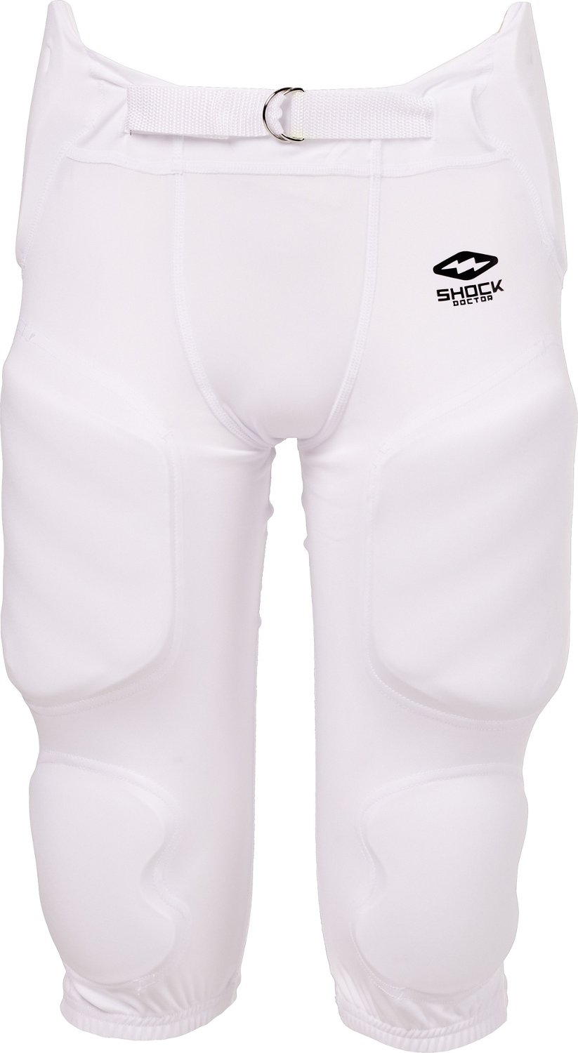 The Shock Doctor Showtime Football Integrated Pant offers maximum coverage and protection for your hips, thighs, knees, and tailbone. Use this football pant to step on the field with the confidence and protection you need to play at your very best.