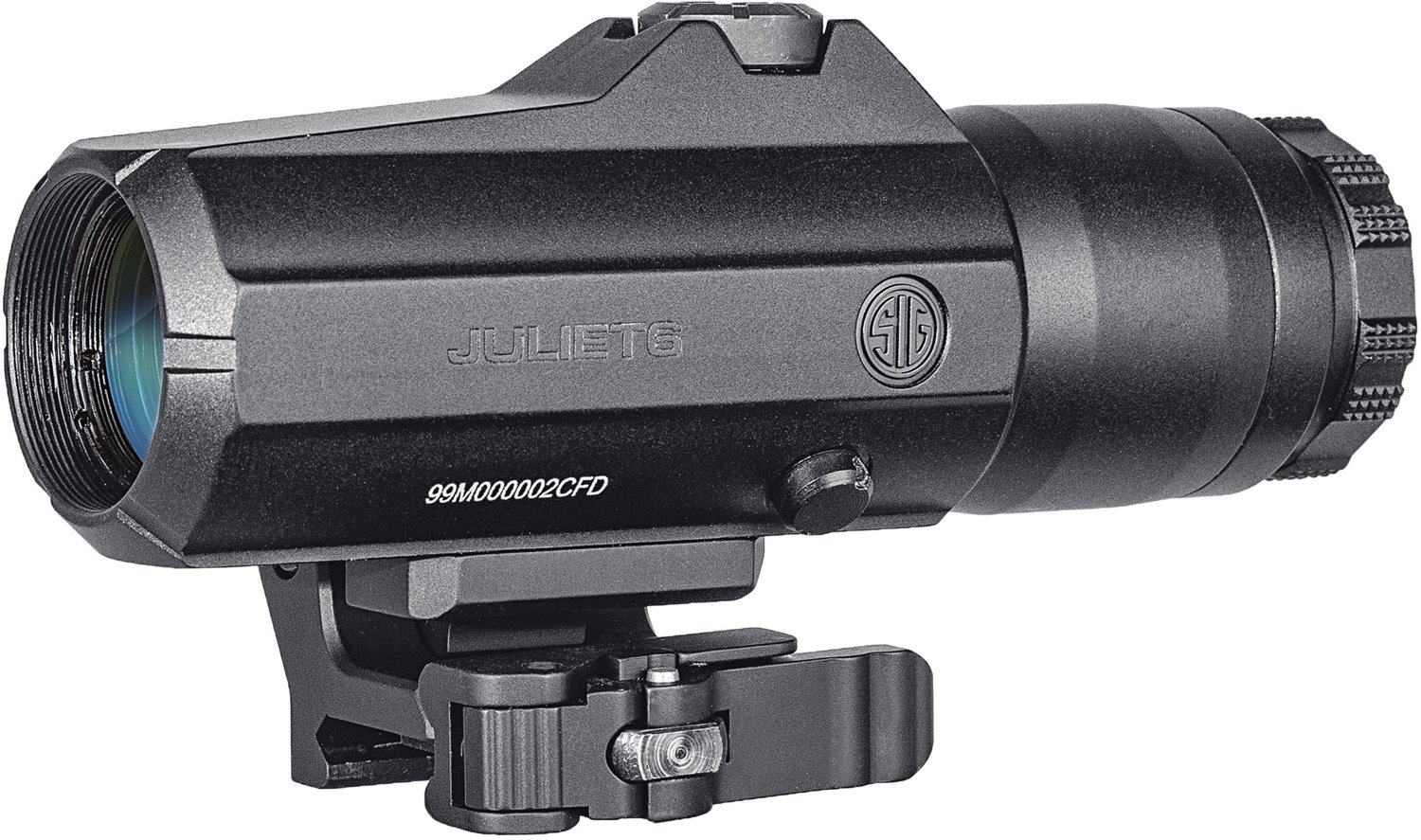 Move from close quarters to intermediate combat with ease by attaching the SIG SAUER Juliet6 6x Magnifier to your rifle. Housed in aircraft-grade CNC aluminum, this durable magnifier features an IPX-8 waterproof design to keep it dry, while the front and rear thread-in lens protector shields the magnifier from the elements. The PowerCam 90-degree mounts lets you quickly adapt to changing combat scenarios, and the built-in recoil lugs ensure repeatable zero.