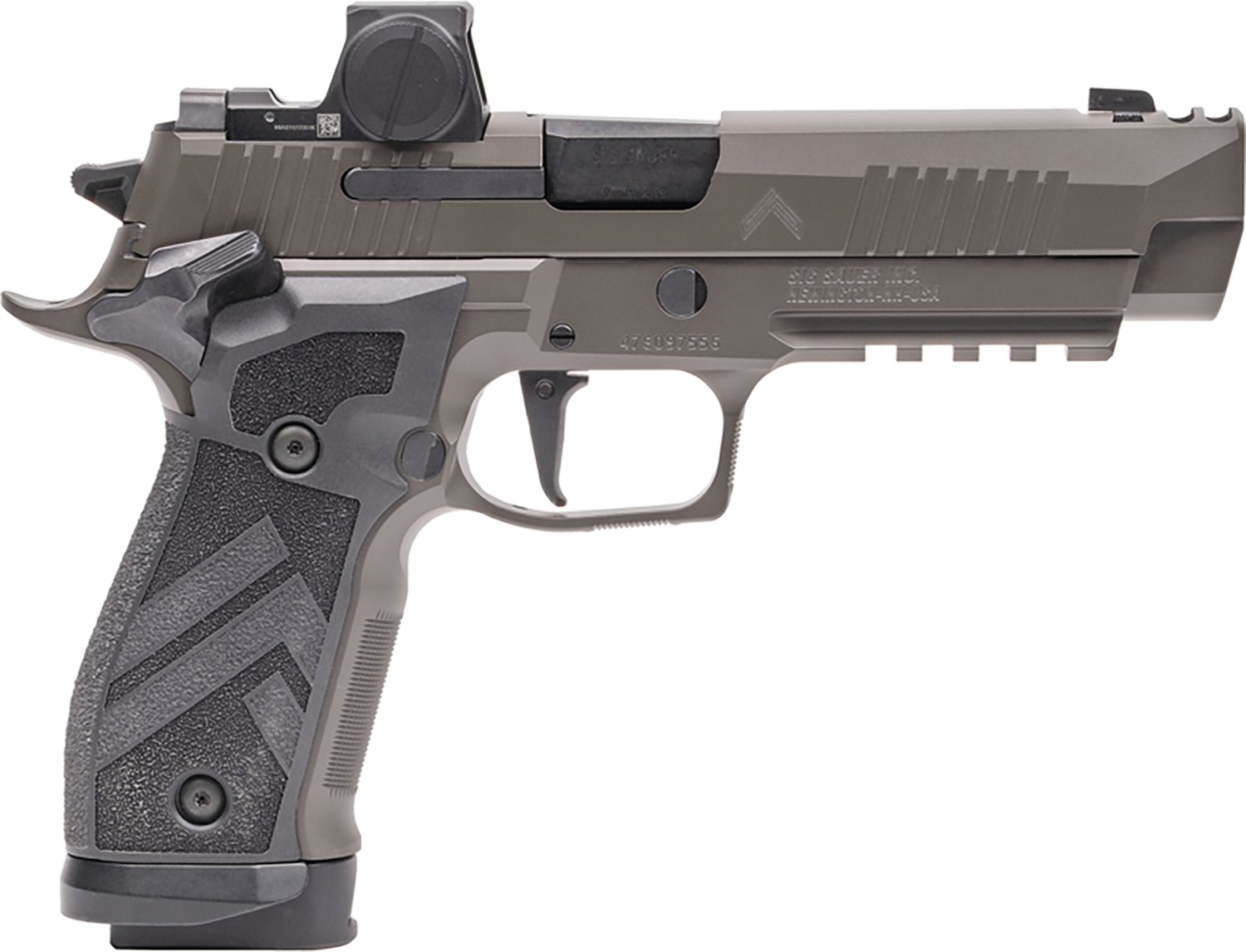 The SIG SAUER P226 XFive Legion 9mm Pistol is optics-ready with a Picatinny rail, a serrated slide, a stainless steel frame and a Sig ROMEO-X optic. This single- and double-action handgun has a 4.4-inch carbon steel barrel, a capacity of 20+1 rounds and a TXG panel with mag well grip. It also features an adjustable Xseries flat face trigger and XRAY3 day and night sights.