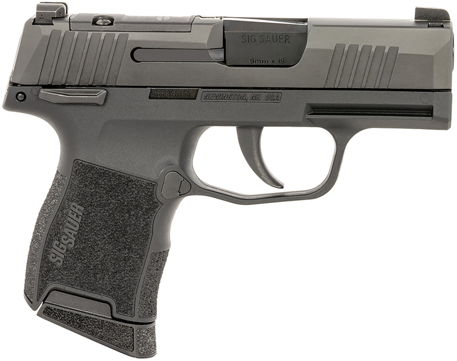 The SIG SAUER P365 CA Compliant 9mm Striker Fired Pistol is designed as a striker fired pistol with a 10-round capacity. It features textured polymer grips, as well as a stainless steel slide and polymer frame with Nitron coating. The pistol also comes with standard X-RAY 3 Day/Night sights.