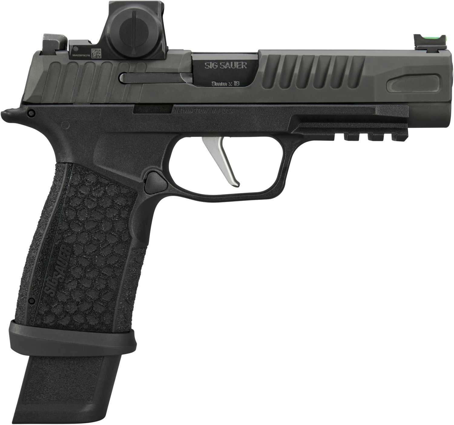 The SIG SAUER P365 Fuse Romeo X 9mm Striker-Fired Pistol is designed as a striker-fired pistol with a 21- or 17-round magazine capacity. Featuring a 4.3-inch carbon steel barrel with DLC finish, this handgun comes with a fiber optic front sight with a serrated rear sight.
