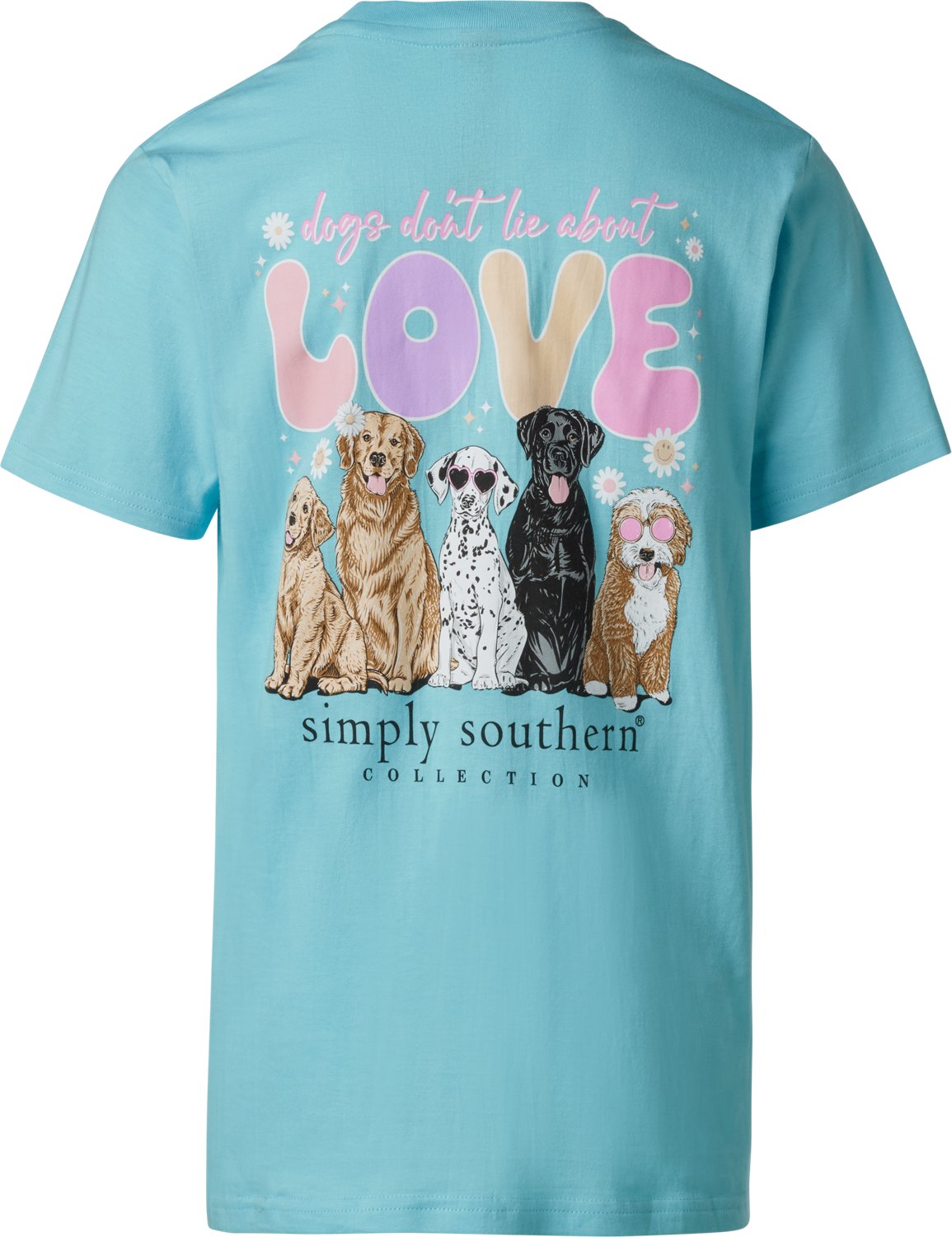 Show off your fun side with the Simply Southern Girls' Love Dogs Graphic T-shirt. The cotton material provides a comfortable feel, while the graphic design offers a stylish look.