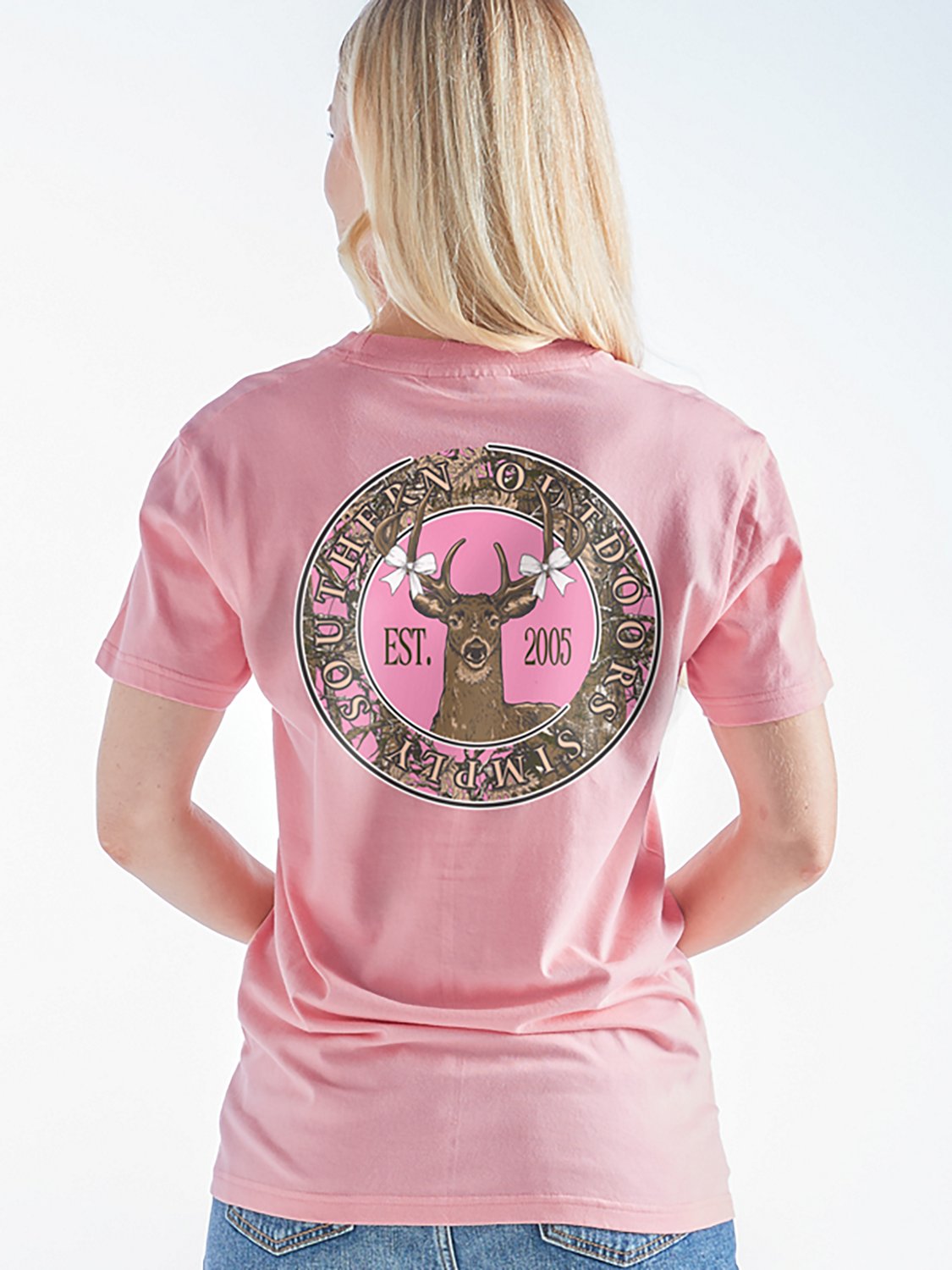 Put your stylish side on display when you wear the Simply Southern Women's Camo Deer T-shirt. The 100% cotton construction helps keep you comfortable throughout the day, and the graphic design adds an eye-catching appearance.