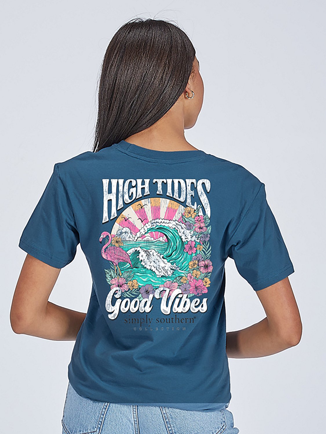 Show off your fun side with the Simply Southern Women's High Tides Graphic T-shirt. The cotton material provides a comfortable feel, while the graphic design offers a stylish look.