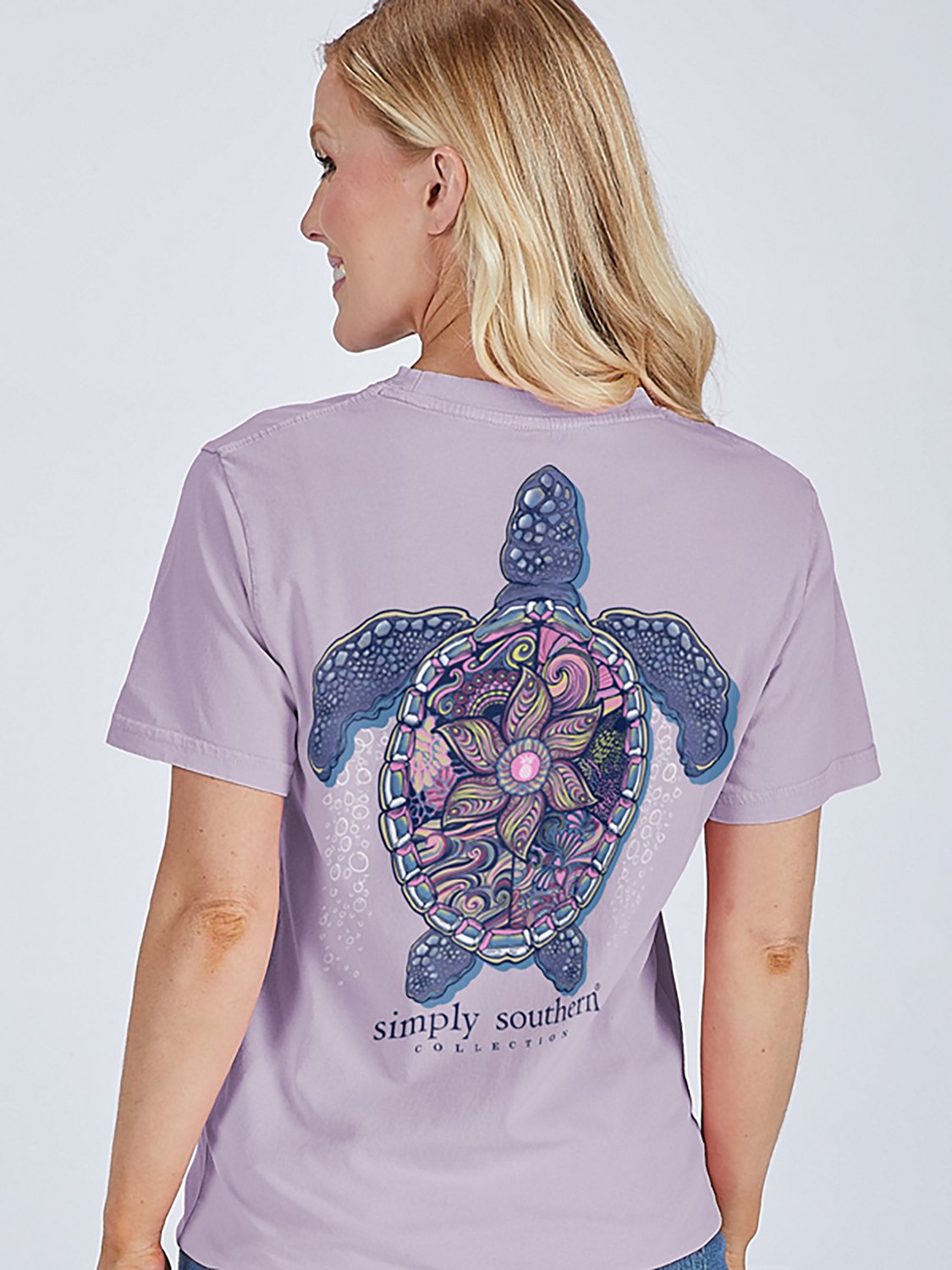 Put your stylish side on display when you wear the Simply Southern Women's Turtle T-shirt. The 100% cotton construction helps keep you comfortable throughout the day, and the graphic design adds an eye-catching appearance.