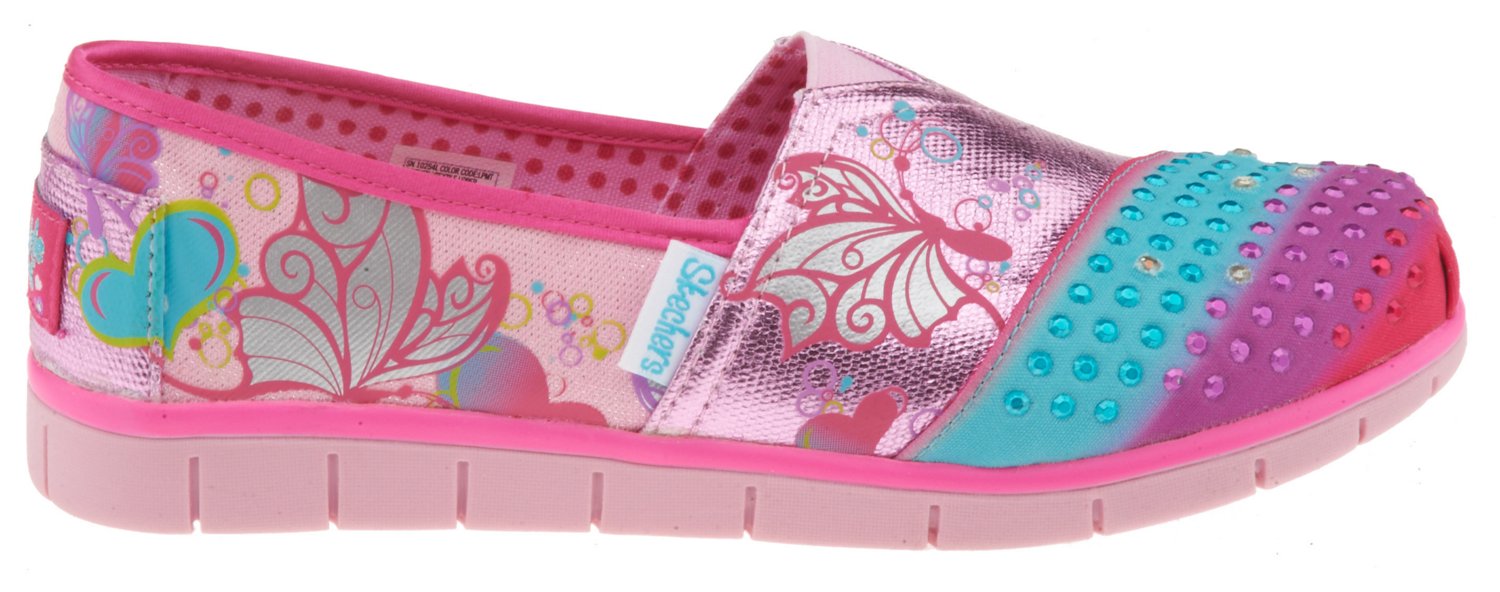 Your little girl will love the SKECHERS Girls' Twinkle Toes S Lights Starlight Shoes, which have metallic-coated, sparkle canvas, studded toes and lights for a fun design. The canvas uppers help ensure comfortable wear, while the Bontex canvas cloth insoles offer cushioning. 12.8 oz. per shoe.