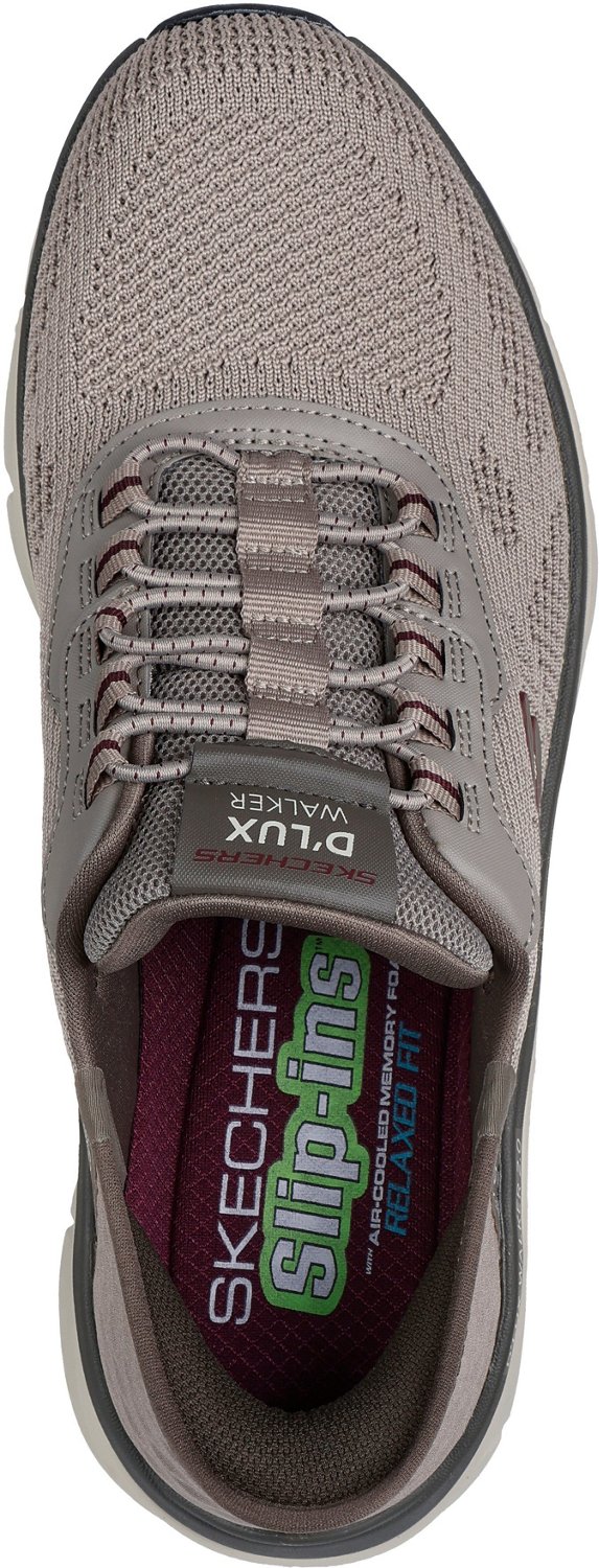Walk farther in comfort with the SKECHERS Men's D'Lux Walker 2.0 Rezinate Slip-In Relaxed Fit Shoes. The engineered knit uppers deliver a relaxed fit with extra room around your forefeet. Memory Foam® insoles and cushioned midsoles provide comfort, while Heel Pillow™ technology delivers a locked-in fit.