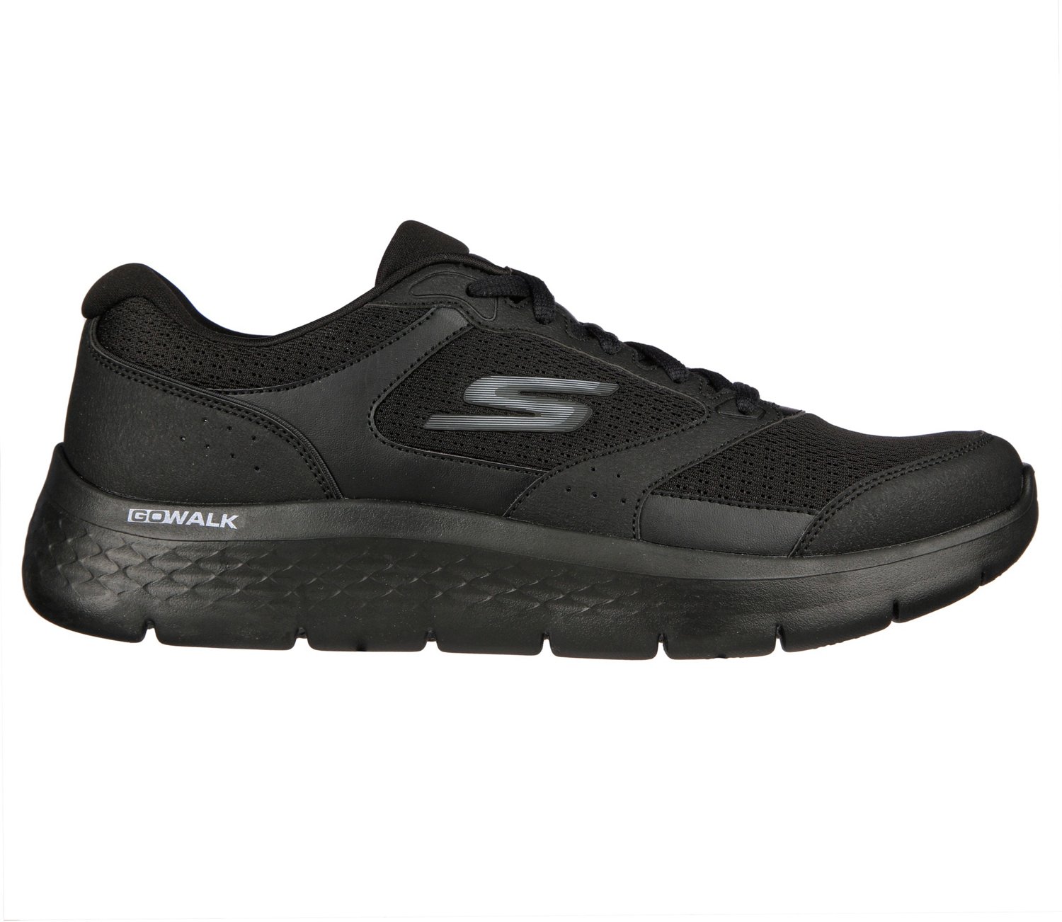 Go the distance with the SKECHERS Men's Go Walk Flex Shoes. The mesh uppers have synthetic overlays for breathability and durability, while the Air-Cooled Goga Mat insoles offer responsive ULTRA GO cushioning. The Ortholite foam insole layers deliver additional cushioning, and the rubber panels ensure stability and traction.