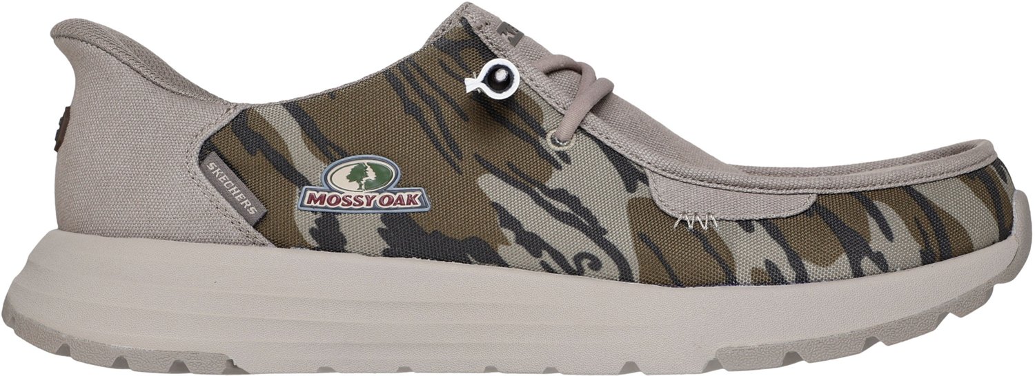 Take on the world in the SKECHERS Men's Kornell Mossy Oak Slip-in Moc Toe Shoes. Their moc toe canvas upper has deco stretch laces. The flexible outsole provides traction, and their Skechers Air-Cooled Memory Foam® insole allows cushioned comfort. The charcoal infused insole helps neutralize potential odor.