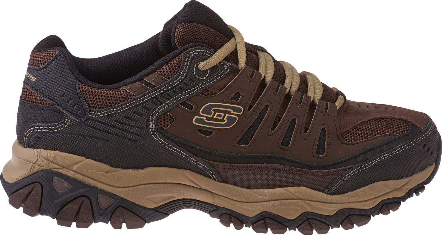 With smooth leather uppers and mesh fabric panels for ventilation, the SKECHERS Men's After Burn Memory Fit Training Shoes are great for your workouts. Full-length, removable memory foam insoles provide cushioning, while the Articu-Lyte midsoles offer shock absorption, flexibility and support. Flexible, high-traction rubber outsoles with 1-1/2" built-in heels. Lace-up design with padded collars and tongues. Soft fabric shoe linings.