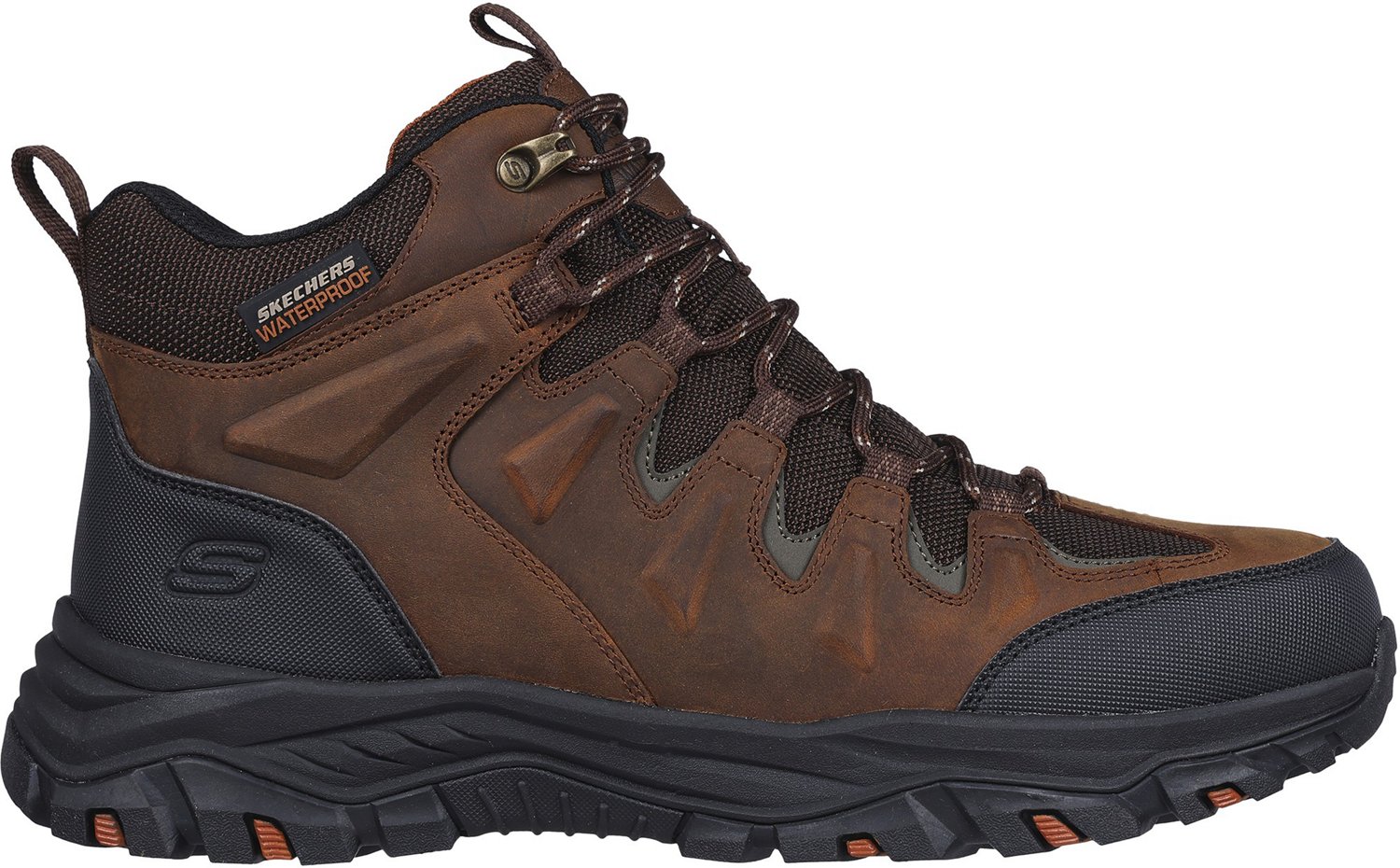 Protect your feet while on the trail with SKECHERS Men's Rickter Branson Waterproof Boots. The rugged leather and synthetic uppers are fully seam-sealed and waterproof for extra protection. Air-Cooled Memory Foam™ insoles cushion your steps, while durable outsoles provide a reliable base.