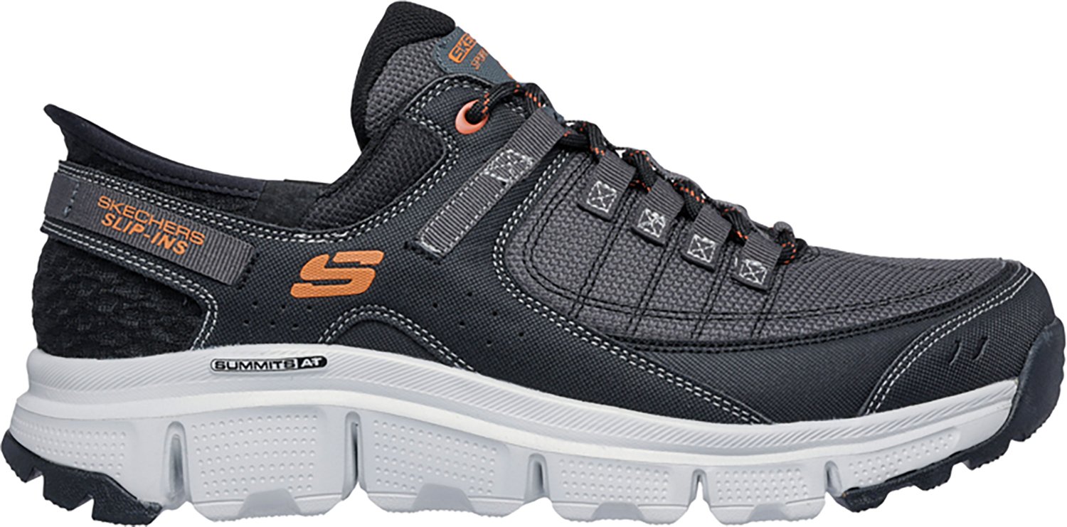 Pick up the pace with the SKECHERS Men's Summit AT Slip-in Shoes. These shoes are made with a Heel Pillow™ and cushioned Memory Foam® insoles to keep your feet comfortably in place. The slip-in design makes these shoes easy to take on and off, while adjustable laces add an extra layer of support and stability. Flexible midsoles absorb shock with each step for comfort, and the durable outsoles increase traction on uneven surfaces.