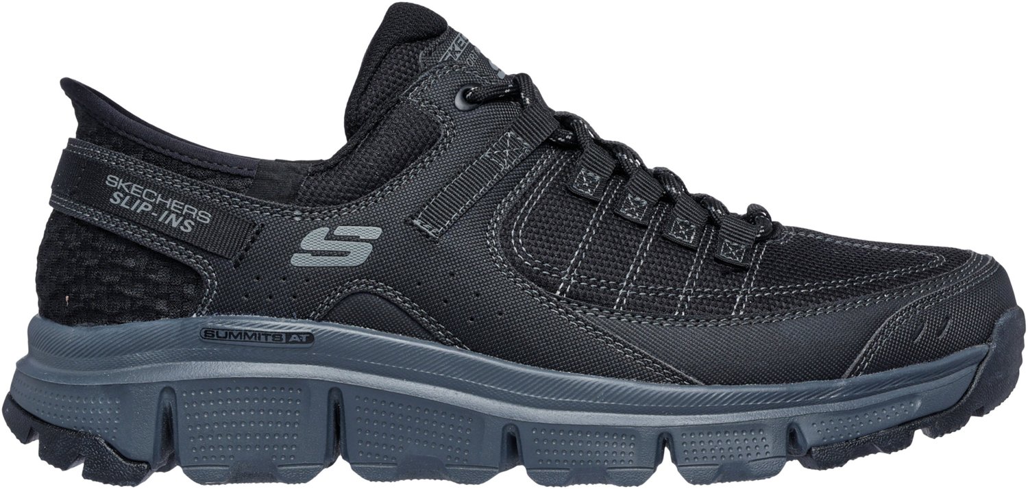 Pick up the pace with the SKECHERS Men's Summit AT Slip-in Shoes. These shoes are made with a Heel Pillow™ and cushioned Memory Foam® insoles to keep your feet comfortably in place. The slip-in design makes these shoes easy to take on and off, while adjustable laces add an extra layer of support and stability. Flexible midsoles absorb shock with each step for comfort, and the durable outsoles increase traction on uneven surfaces.
