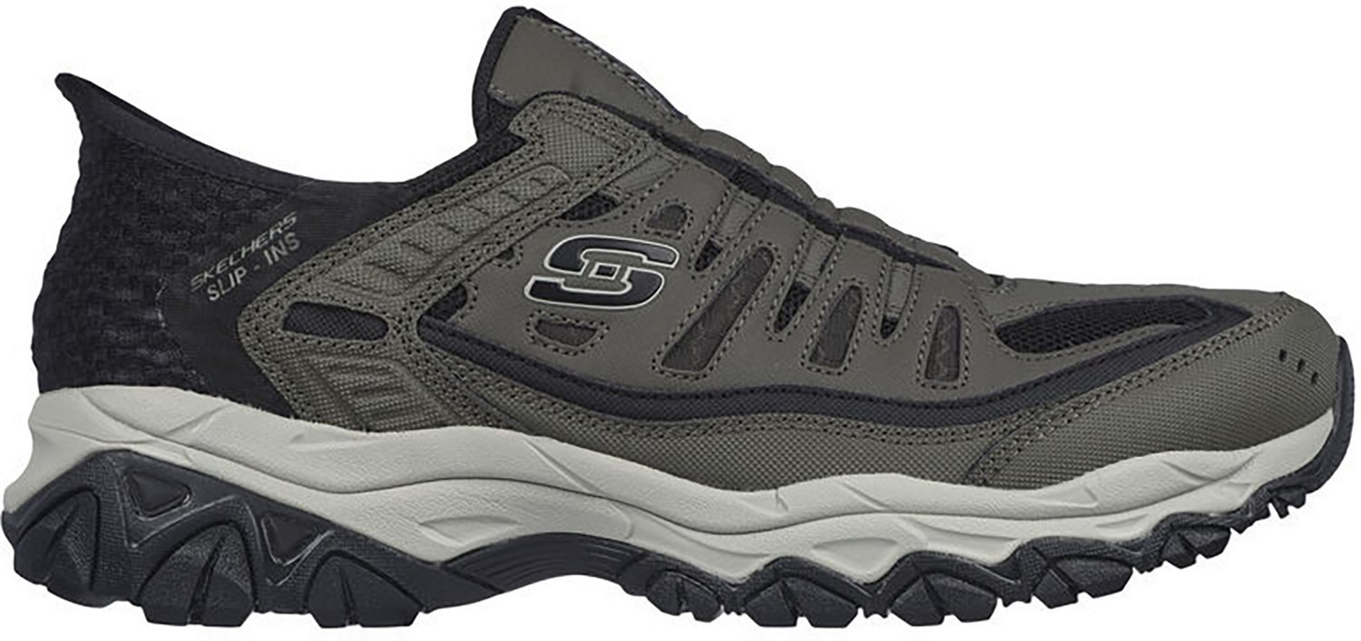 Sweat it out in comfort wearing the SKECHERS Men's Vigor 3.0 After Burn Slip-Ins Shoes. The Exclusive Heel Pillows™ help keep your feet in place as you move, and the flexible traction outsoles with sculpted midfoot details withstand wear and tear. The mesh and duraleather uppers promote resilience and airflow, and the TOUCHLESS FIT™ provides a hands-free, Slip-ins fit for easy on/off.