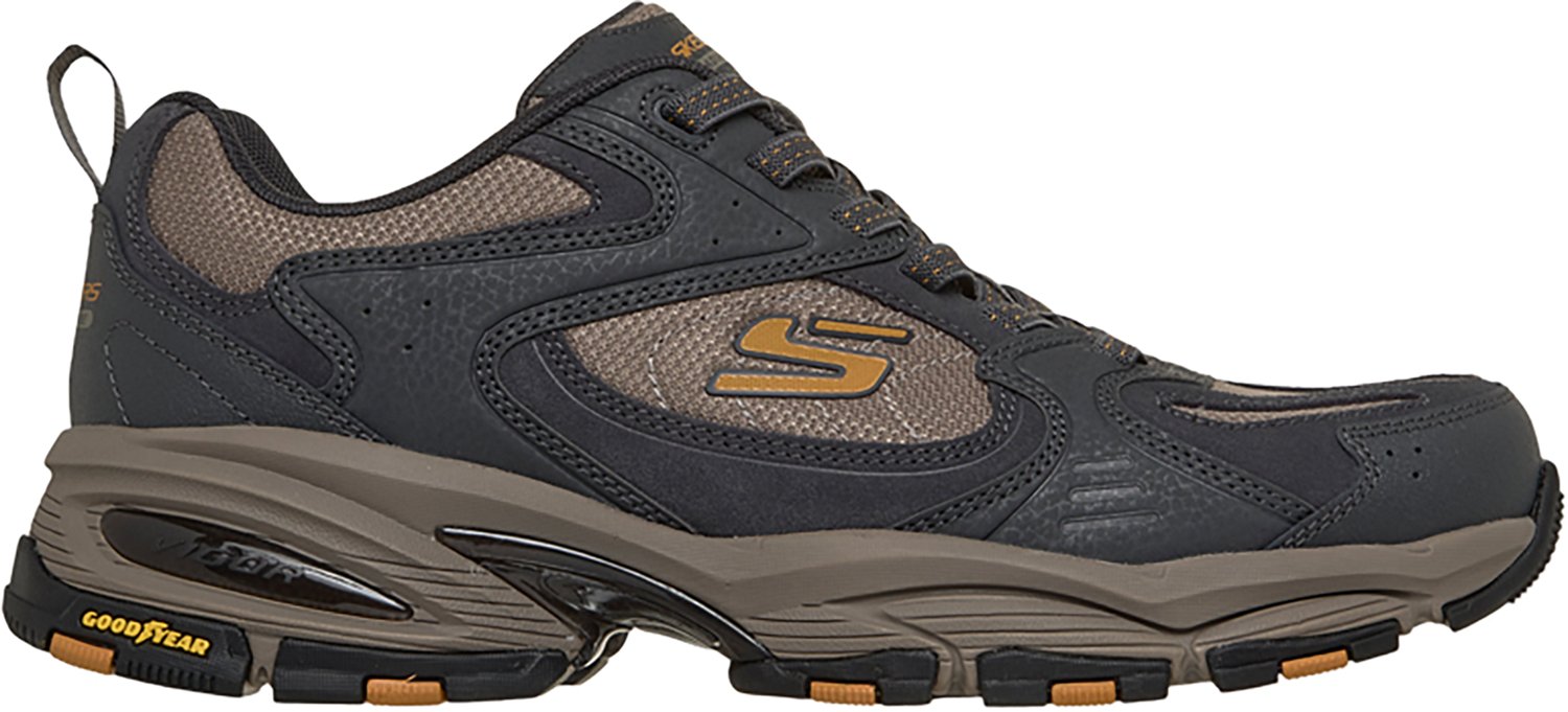 Step out in sporty style with the SKECHERS Men's Vigor 3.0 Running Shoes. Smooth leather and synthetic uppers deliver a sleek and classic look that stands up to everyday wear. Goodyear® rubber outsoles enhance durability while Air-Cooled Memory Foam® insoles keep you comfortable on your feet.