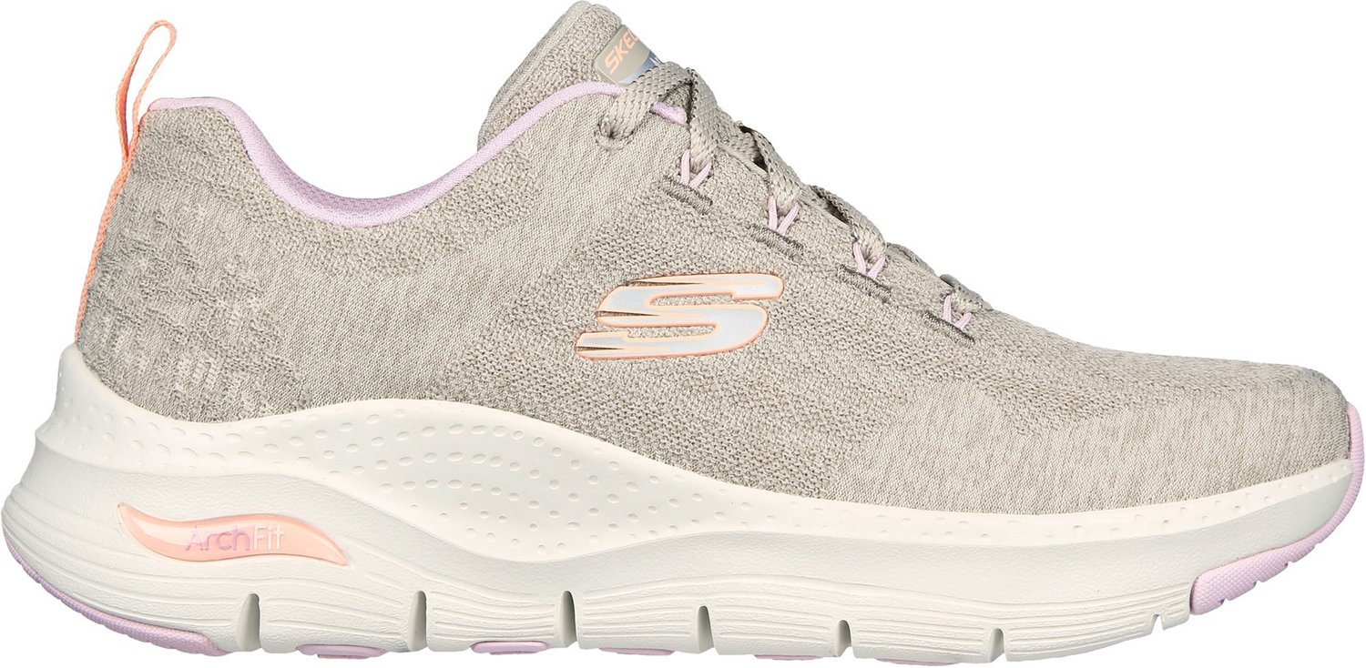 Your feet will thank you for wearing the SKECHERS Women's Arch Fit Comfy Wave Shoes. These shoes feature the Arch Fit insole system, podiatrist-certified to support the natural arch in your feet. The knit-mesh, engineered upper combines with weave cooling panels for seamless comfort with every step.