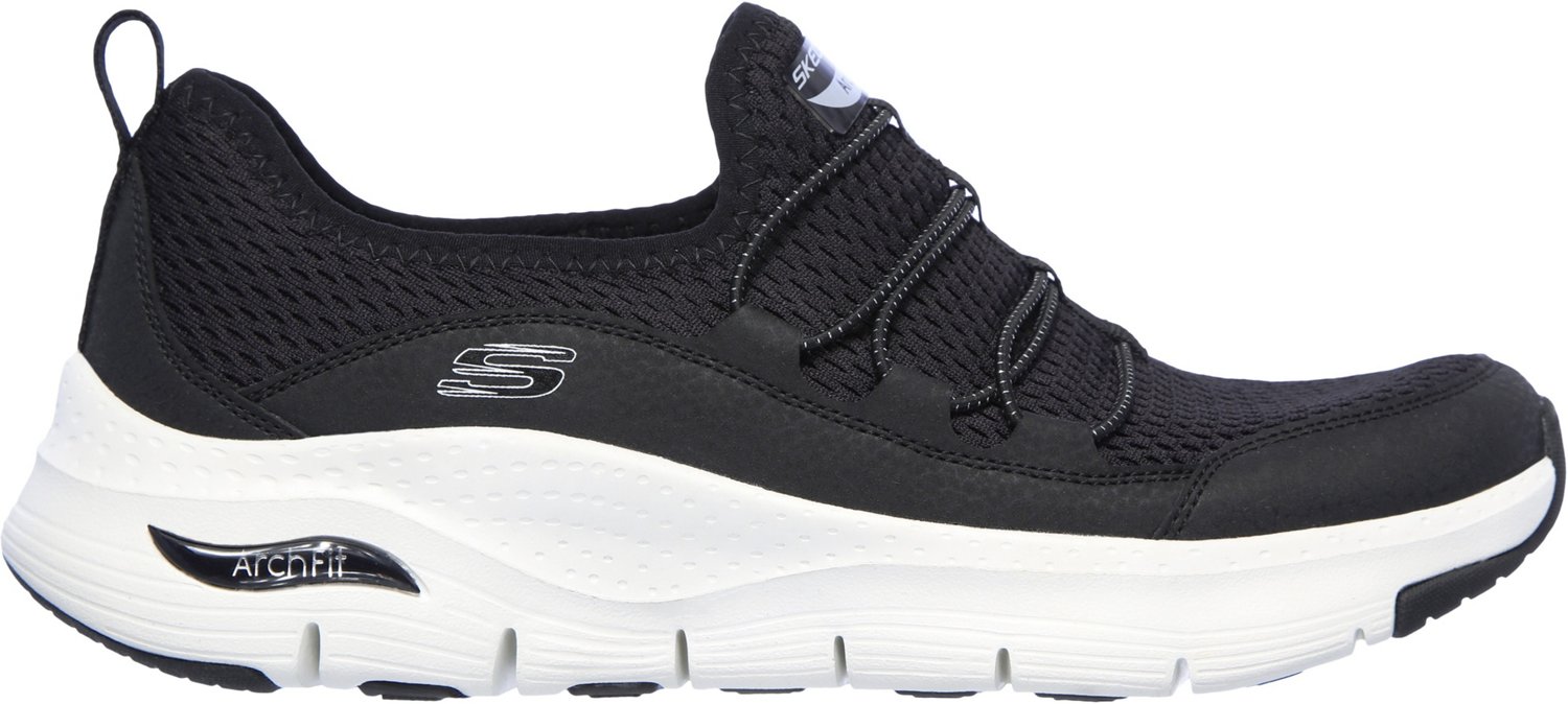 Walk your favorite routes in comfort wearing the SKECHERS Women's Arch Fit Lucky Thoughts Walking Shoes. These athletic-style casual shoes are made with mesh uppers featuring synthetic leather overlays for support. The Arch Fit insole system and lightweight cushioned midsoles help keep your feet comfortable, while the slip-on style with bungee laces makes the shoes easy to put on and take off.